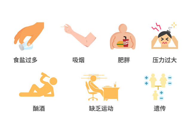 高(gao)(gao)鈉低(di)鉀膳食、超重和肥胖、吸煙、過量飲酒、社會心理因素、高(gao)(gao)齡(ling)等是高(gao)(gao)血壓發(fa)病的常見危(wei)險因素。除此之外,空氣污染、高(gao)(gao)海拔、高(gao)(gao)血壓家族史、缺乏體力活動等也會影響高(gao)(gao)血壓的發(fa)病。